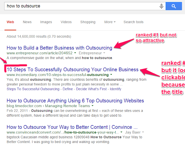 Let’s search for the term how to outsource. Note that the most clickable headline is in position #2.